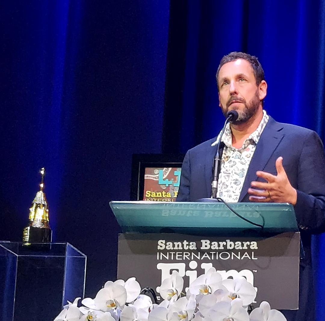 Dustin Hoffman, Presentor - Leonard Maltin interview with Adam Sandler - Adam Sandler with a script of thankyou's to many (photo: BCarroll) It was a fabulous funny evening at the Arlington Theatre filled with belly laughs watching red carpet arrivals, Leonard Maltin Interviewing Sandler and sometimes Sandler interviewing Maltin, leading up to the presentation of the Maltin Modern Master Award, an award which recognizes an individual who has enriched our culture through their accomplishments in the motion picture industry, as well as his outstanding work in film. Leonard Maltin did a great interview with entertaining clips from many of Sandler's beloved films and the audience enjoyed every minute. Long-time friend and film associate Dustin Hoffman presented the award to Sandler, finishing his presentation by sharing that Sandler was not only one of the funniest talents in the business but was also an amazing human being. This was an evening of pure love and respect, along with uncontrollable laughter. I was so grateful to be there to see this special tribute given to Adam Sandler. DAY 2 AMERICAN RIVIERA AWARD  Jeff Bridges Presents Ethan Hawke with American Riviera Award (Getty Photo) The Ethan Hawke American Riviera Award, an award recognizing outstanding achievement in American film was Presented by Jeff Bridges, Academy Award and Golden Globe Award-winner, who joined Hawke in signing autographs and greeting the huge crowd of fans outside the Arlington Theatre. Dave Karger moderated a conversation on stage where notable performances were discussed. DAY 3  Early morning start for breakfast at Renaud’s and off to a favorite event The Women’s Panel at the Arlington Theatre where Yvett Merino Forthcoming , Producer Zootopia 2 Natalie Musteata, Writer/Director – Two People Exchanging Saliva, Alisa Payne, Producer – The Perfect Neighbor, Ashley Schalaifer, Producer – Train Dreams, Laia Casanovas, Sound – frustrations and joys of their specialized work on great film teams they were an important part of in 2025. This is a must for all the back history on individual working experiences in award-winning films annually.(photo: BCarroll)