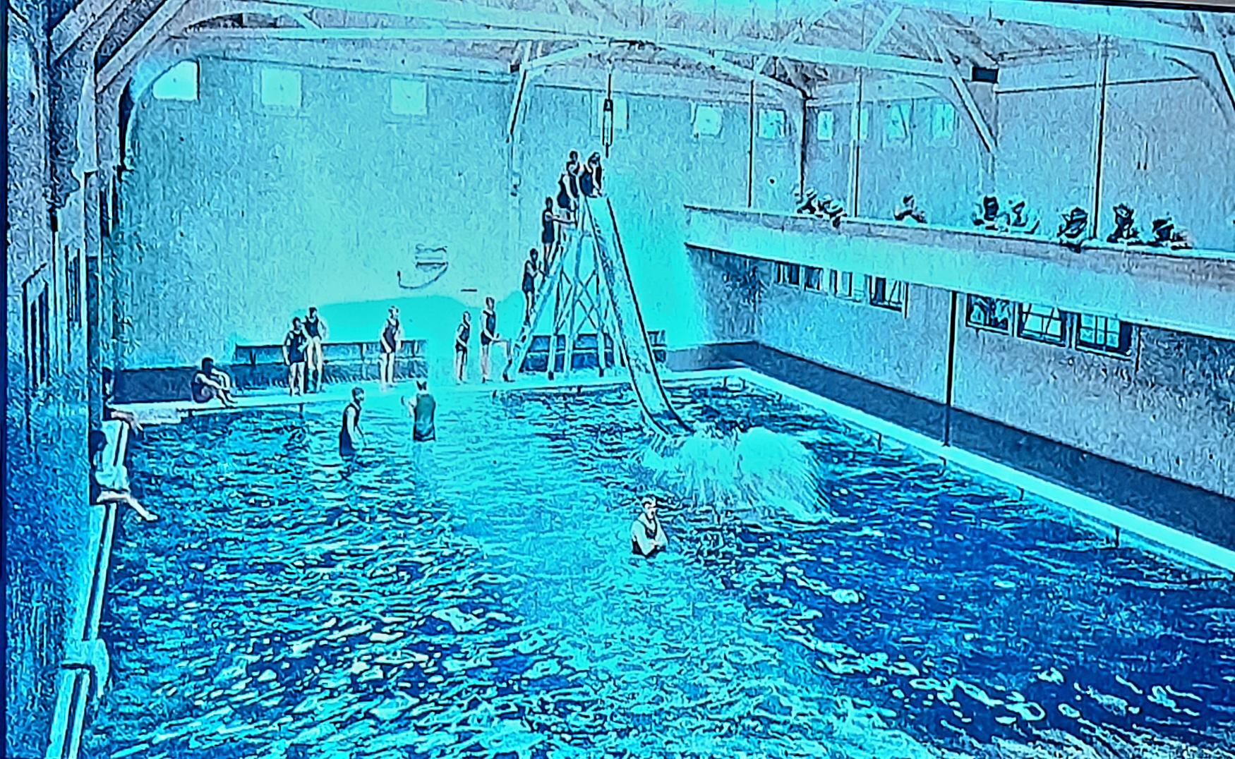 Beautiful Colorized photo of swimmers in renowned Santa Barbara Bath House. JOE DELISE SHARES THE DETAILS ON “THE SHOCKING HISTORY OF ELECTRICITY IN SANTA BARBARA” AT SANTA BARBARA MISSION ARCHIVE-LIBRARY By Bonnie Carroll