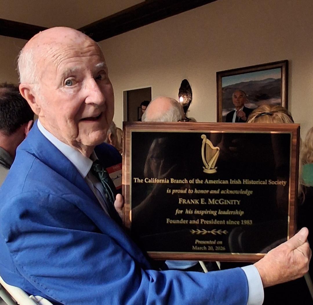 HONORS FOR FOUNDER & PRESIDENT FRANK MCGINITY AT AMERICAN IRISH HISTORICAL SOCIETY OF SANTA BARBARA ST. PATRICK'S DAY DINNER 2026 by Bonnie Carroll