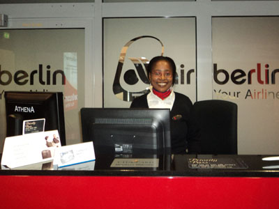 AIRBERLIN In Flight Adventures Via Duesseldorf to Mallorca by Bonnie Carroll Shopping Along the KO Dreaming in Mallorca   What an amazing surprise to find myself on a flight to Mallorca, Spain via Dusseldorf, Germany in a plane that has seats large enough and flexible enough (head lying flat and legs stretched all the way out) to actually sleep in, with a crew who worked hard to provide outstanding service 24/7, and really delicious food and beverages to savor along the way. According to Thomas Kotter, the Director of Communications for Dusseldorf Airport, who met us on arrival "we hoped the airport design would bring the outside inside, and have tried to include everything a traveler could want or need for easy travel."   This my friends is what's happening on Airberlin today.The business class on their aircraft is as nice as anything I remember about first class flying in times past. The attention to detail and passenger comfort was amazing. Passengers were given nifty little bags filled with things you need like a tooth brush and paste, a razor and shaving cream, L’Occitane skin cream, ear plugs, eye shades, soft little socks with slippers to match, and more. And that was just for starters. Check-in at th e club for Airberlin is handled by competitent and friendly staff, who call you to board your flight on time. The food and beverage service on board the aircraft is outstanding. Someone has put some real thought into how people like to eat when flying on long haul flights. Everything was tastefully prepared and perfectly served with real silverware, cloth napkins, and individual salt & pepper shakers. Menus included unique appetizers, hot entrees, cold plates, soups, desserts, breakfast plates, a full bar service, and selected wines for pairing with food items. Flights from Dusseldorf to Mallorca offer several menu items from Sansibar Restaurant for seven euro. I tested a full bodied pene pasta with mushrooms and cream sauce on the lunch flight, and a delicious Spanish breakfast omelet on the morning return flight. If you require more than a sandwich these new options are a tasty option for the price.