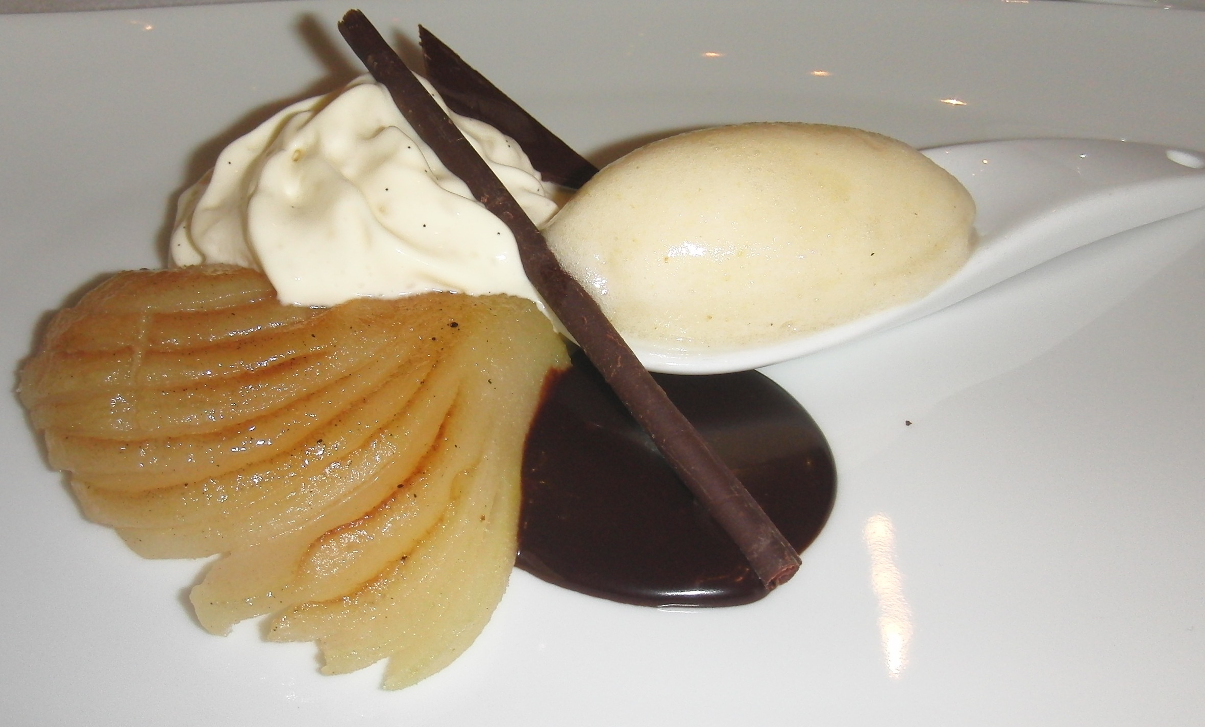 LE CORDON BLEU Educations, Excellence, Hospitality in Ottawa By Bonnie Carroll Le Cordon Bleu, located at 453 Laurier Avenue, one of the authentic Le Cordon Bleu Culinary Arts Institutes, has offered education and excellence in the art of cooking for many of the world’s most renowned chefs throughout the years. The dedication of masters like Executive Chef Yannick Anton, who was trained at Laycee Hotelier de Nice and has been with the Institute in Ottawa since 2006, to share their expertise with students determined to dedicate their future to the preparation and presentation of fine food is obvious at Le Cordon Bleu in Ottawa, Canada. This respected institution also houses Signatures Restaurant, where local residents from all walks of life, as well as visiting tourists, may savor the fruits of the labor of teaching chefs and enthusiastic students.    On arriving at this beautiful yellow and blue temple of gastronomique you see what could only be described as one of the most elegant historic homes in Ottawa, welcoming you to come in. The entry, gift shop (which contains all the lovely logo products we foodies love), bar lounge and upper area are decorated in rich woods, lush red paint and delicious fabric coverings showcased on exquisite antique furniture.    The main dining room is done in rich golden tones, and is very old world charming, with mirrors, lamps and window treatments that are reminiscent of another time, yet very current. Pleasant music fills the dining room, and the service of the staff is excellent. The menu at Le Cordon Blue changes weekly and guests are offered an option of two complete menus. I would recommend getting on line to make a selection for the time you will be in Ottawa in advance of your trip. Our lunch included a delicious duo of pork preparation with fresh asparagus, potatoes and gravy, as well as a lovely Italian inspired appetizer and a sweet ending dessert of pear and ice cream served with a touch of rich chocolate.