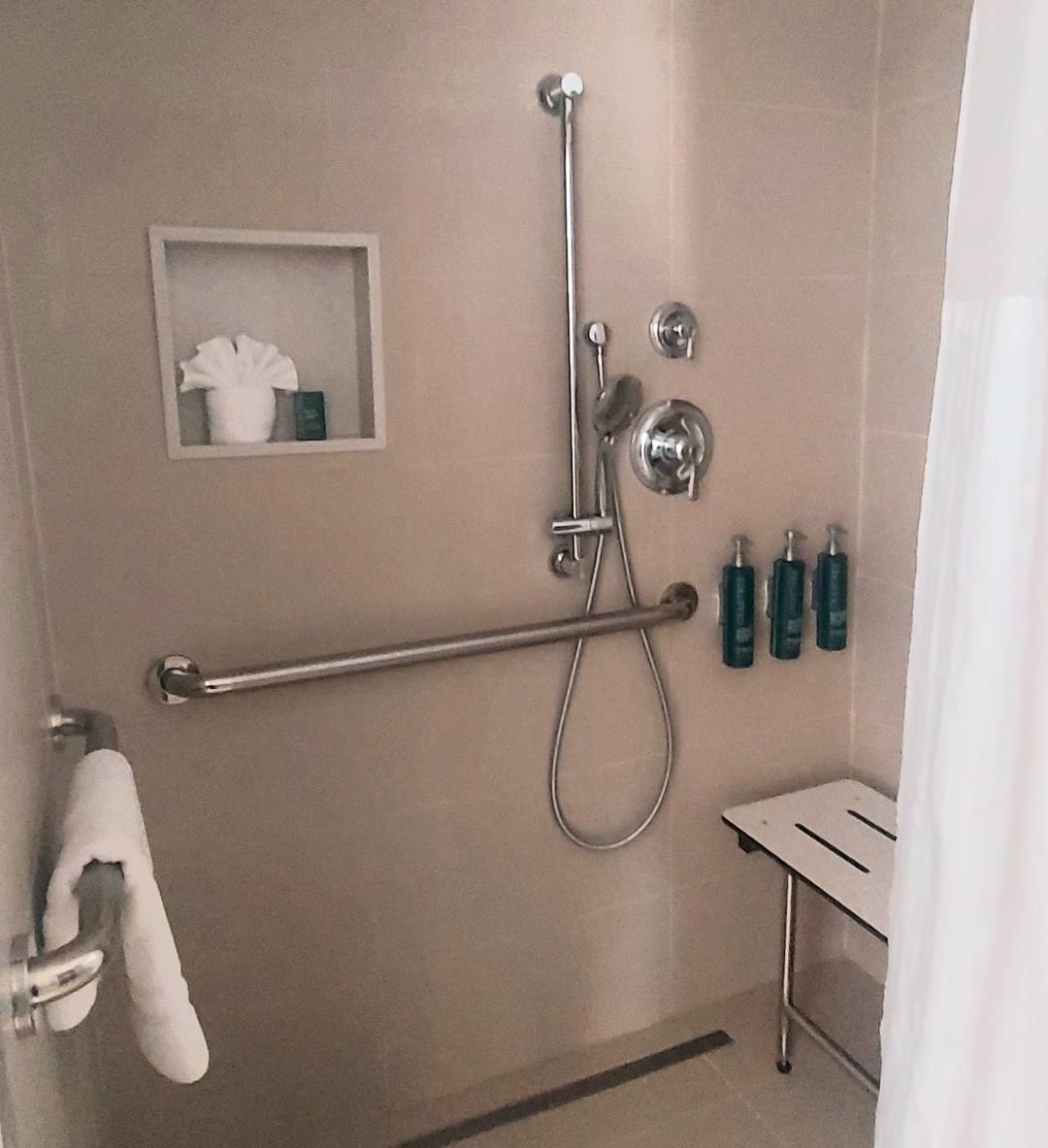 Hilton Santa Barbara Beachfront Resort Pool HILTON SANTA BARBARA BEACHFRONT RESORT FEATURES LUXURY SUITES FOR SENIORS WITH DISABILITIES By Bonnie Carroll End of summer or anytime is perfect to enjoy a fun family staycation or long weekend escape to savor the many pleasures at Hilton Santa Barbara Beachfront Resort, including a pool lift, and the latest in ADA rooms and suites designed to meet the accessibility standards of the American Disabilities Act ensuring people with disabilities can use the space comfortably and safely. Senior guests staying in the new private patio, pool side suites and rooms can enjoy sunning, and sharing lunch with family with a pool view and pool access. These new ADA suites are amazing for families with physically challenged family members, offering beautiful suites with larger spaces to move around, roll-in showers, easy access amenities throughout and sleeping for a family of four or five. These rooms make travel more accessible and welcoming for everyone regardless of their mobility or sensory impairments, and include lowered counters and thermostats, as well as closet rods and shelves.