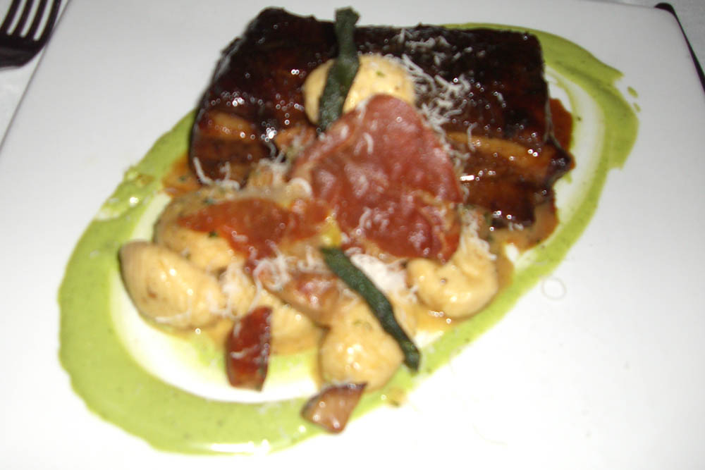 The servers are attentive, but not overly-so, and the wine list, which features wines especially selected to enjoy with the English creations, is huge and the sommelier offers wonderful tips on how to pair them for the best result. Appetizers include an amazing Focaccia, Tuna Tartare, Napoleon of Seared Foie Gras, and Gorgonzola-stuffed figs with balsamic glaze. The stuffed figs are so delicious I could eat them every day! The Papa Carciofi is a wonderful artichoke soup served over bread that can be a great starter or luncheon item. Entrees at Olives, some of which are slow food specialties, run from osso buco of veal to pan-griddled surf and turf to simple (perfectly) roasted chicken to a variety of inventive risotto dishes, vegetable blends and perfect pasta entrees. Naturally, olives play a major role at this restaurant and the dips, sauces, appetizers and entrees presented represent some of the most delicious olive infusions and combinations ever. Olives is described as “One of the nations best restaurants” by Marco R. Della Cava, USA Today.