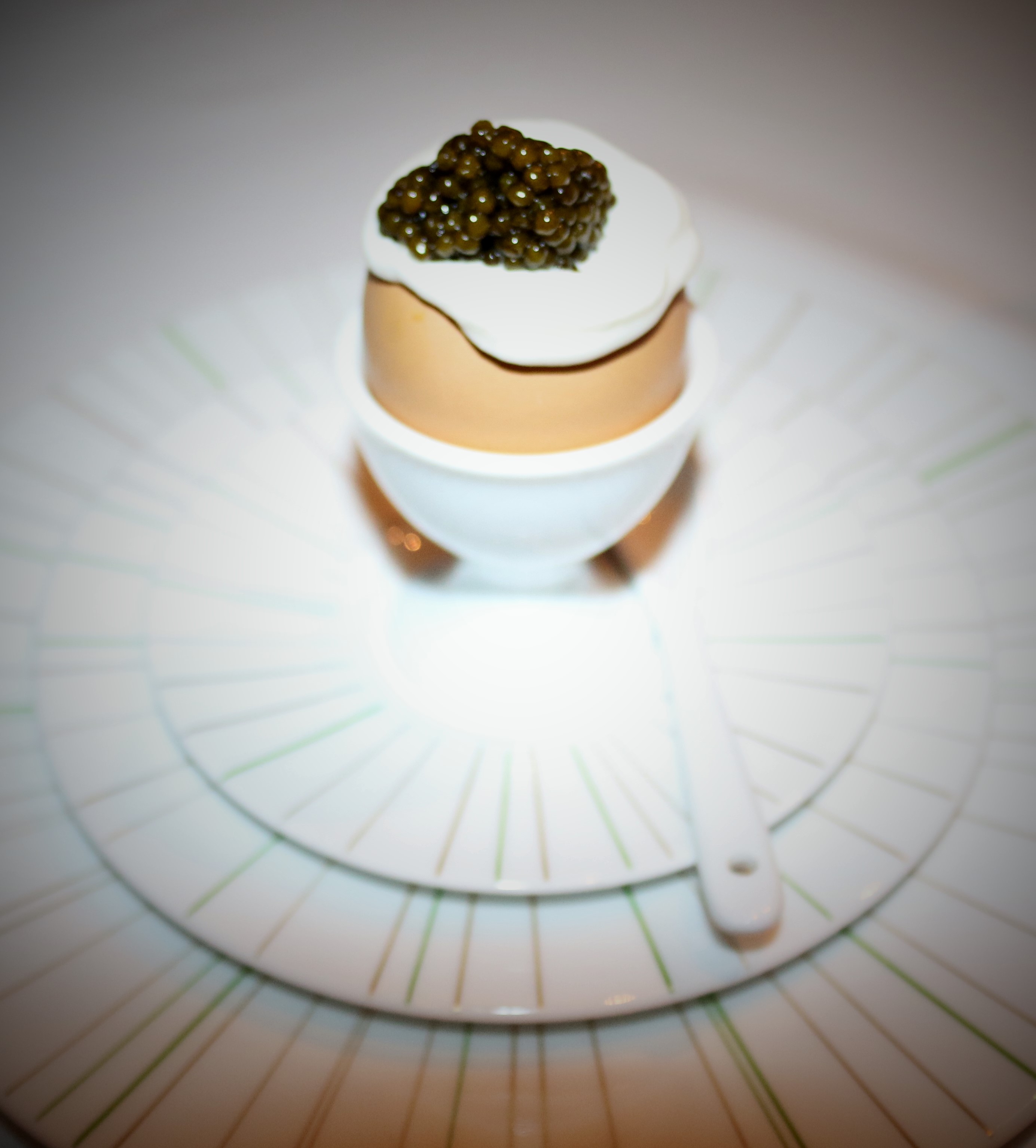 Jean Georges Caviar Egg with Signature Brut Rose (Photos by Bonnie Carroll) The Caviar Egg dish by Jean Georges at the Waldorf Astoria in Beverly Hills is a magnificent preparation and presentation paired with their own signature champayne and should be tasted if you are in the area,
