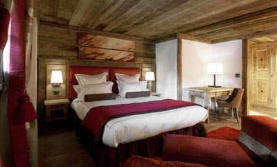 THE HOTEL DE CHARME LES AIRELLES IN THE FRENCH ALPS DEBUTS THE PRIVATE AND LUXURIOUS CHALET ORMELLO The Exclusive Nine-Bedroom Chalet Opens December 11 The Hotel de Charme Les Airelles, the five-star ski resort in one of the world’s most exclusive winter destinations, announces the addition of the new Chalet Ormello, a private ski villa. The recently acquired chalet underwent a million Euro renovation and will debut with the 2009/2010-winter season reopening on December 11. Just steps from the Bellecôte slopes amidst a breathtaking mountain setting, the 3,000 square-foot chalet offers guests five floors of secluded luxury, comfort and a multitude of modern amenities including a private Valmont Spa, swimming pool and Jacuzzi, steam room, fitness room, and film screening room. Chalet Ormello is the perfect holiday destination for large groups or families, comfortably accommodating up to 15 guests complete with seven double bedrooms, two master bedrooms and ample lounging areas.